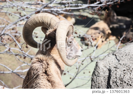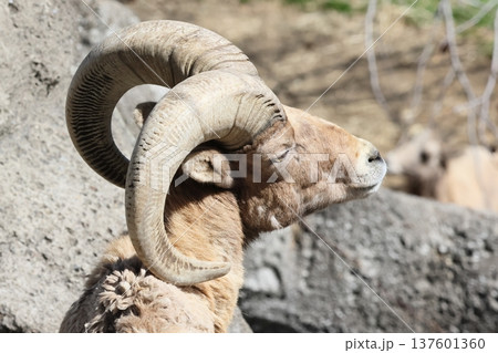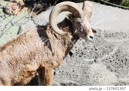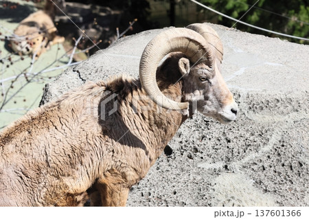日本の神奈川県横浜市の動物園の動物 オオツノヒツジ