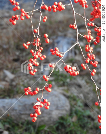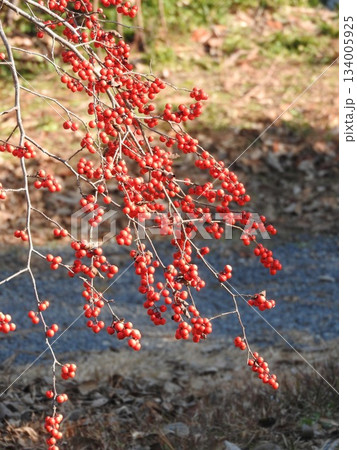 秋に赤い実をつけるウメモドキ