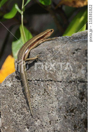 生き物 爬虫類 オキナワトカゲ、沖縄諸島に分布する固有種。主に海岸近くの農地や草原、集落で見られる