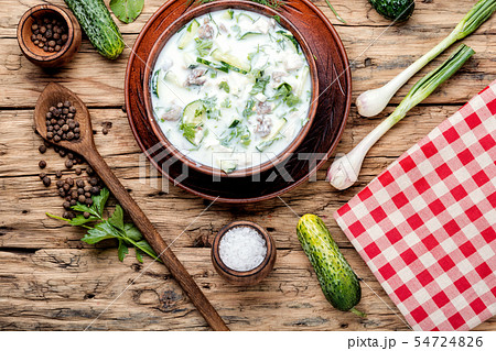 Traditional russian dish okroshka