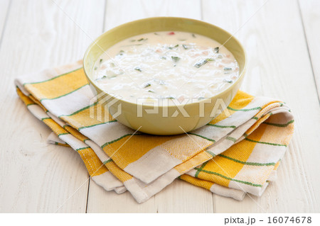 Traditional cold Russian soup with kefir (yogurt)