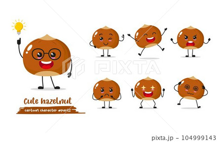 hazelnut cartoon with many expressions. different hazelnut activity vector illustration flat design. smart hazelnut for children story book.