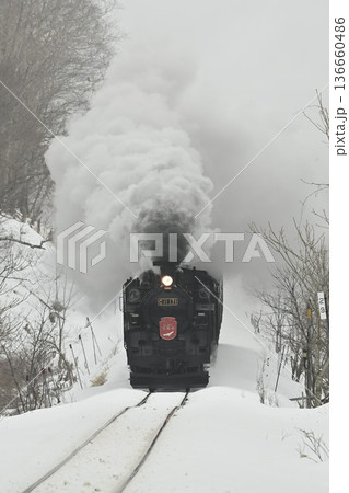 釧網本線 塘路ー萱沼 雪降り 驀進する蒸気機関車