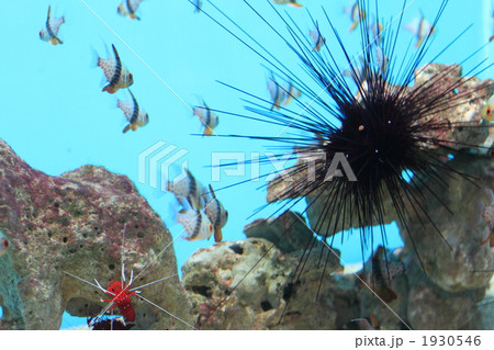 ガンガゼとオトヒメエビとマンジュウイシモチ