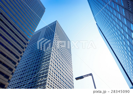高層ビルを見上げるオフィス街の風景