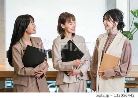 オフィスに並ぶ笑顔のビジネスウーマン(働く女性,ワーキングウーマン,ワーキングママ)