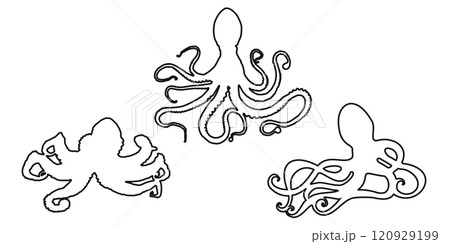 Set black outline octopus, devilfish or poulpe sign icon on white background. Vector clipart illustration