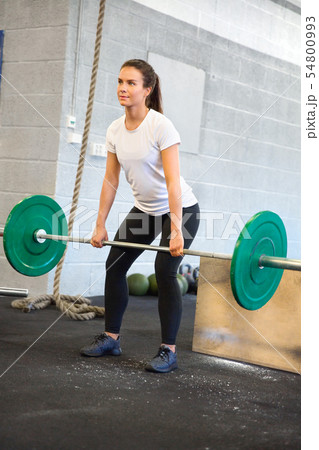 Female Athlete Weightlifting With Barbell In Health Club