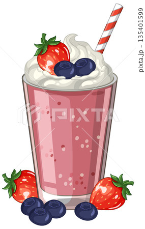 Berry Smoothie with Whipped Cream and Fresh Fruit Toppings