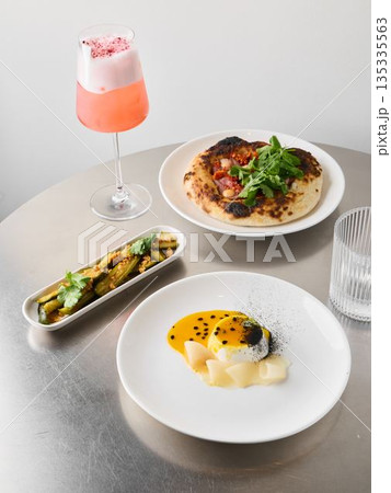 Chic signature drink paired with artistic culinary arrangement
