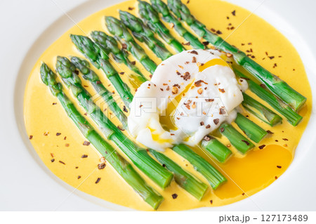 poached egg grilled white asparagus