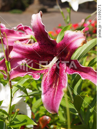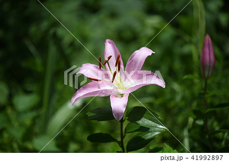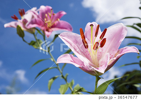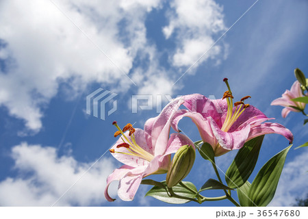 ピンク色のユリ 大輪 オリエンタルハイブリッド 自然背景