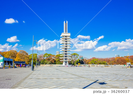 東京 世田谷区 駒沢オリンピック公園 オリンピック記念塔と駒沢陸上競技場