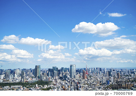 東京風景 渋谷から望む東京タワー方面 緑と青空