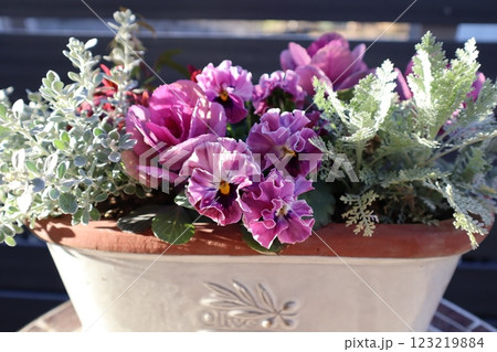 フリルパンジーと葉牡丹の寄せ植え