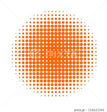 ハーフトーン 網点素材イラスト 小さなドット オレンジ 円フレーム枠 ベクター ピング