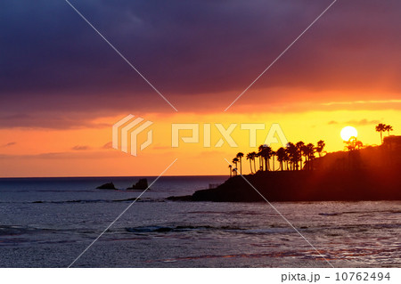 アメリカ合衆国 南カリフォルニア・コスタ・メサ海岸 夕暮れ