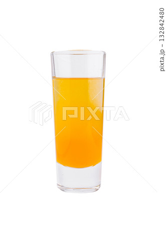Bright orange drink in a tall glass on a clean white background