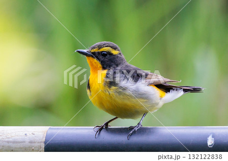 カラフルな容姿で、雌を誘うために高らかに美し声で歌う夏鳥 キビタキ