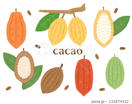 カカオの実・カカオポッドとカカオパルプをイメージしたイラスト
