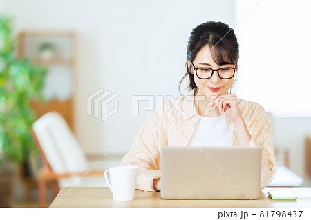 女性 リビング ライフスタイル パソコン テレワーク カジュアル