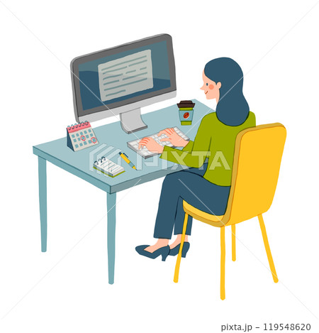 自宅でストレスなく仕事をする女性 シンプルでお洒落な線画イラスト