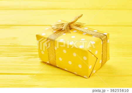 Yellow gift box on yellow background.