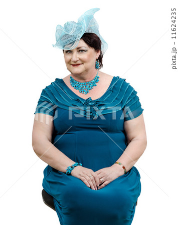 Portrait of an elegant woman in a light blue ball gown in a classic interior