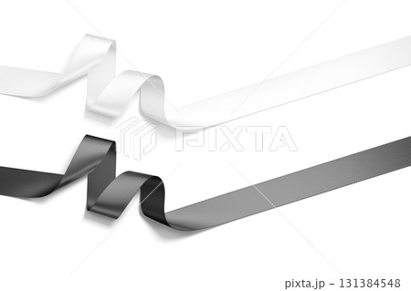 Blank black and white satin ribbon mockup, isolated