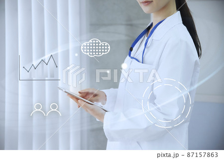 タブレット操作 入力 データ DX 白衣の女性 医療