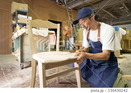 家具作りの工程で細部を整えるベテラン職人