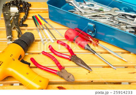 cycle spanner, gasoline-powered saw, hand drill