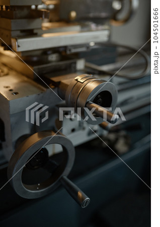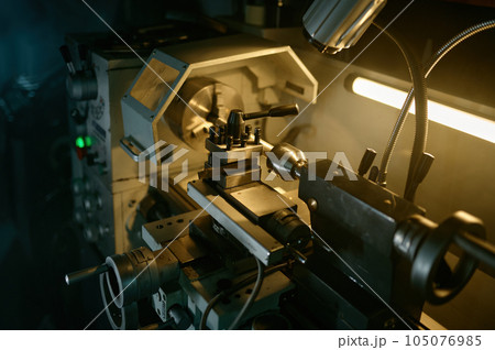 Professional lathe turning machine at garage workshop