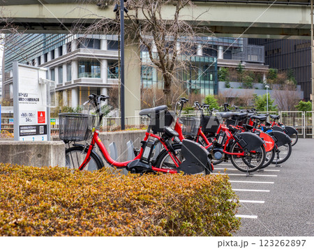 東京・国会通りにある自転車シェアリングのサイクルポート
