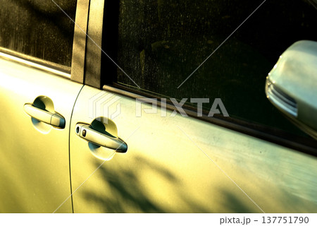 夕陽を浴びた車のボディ