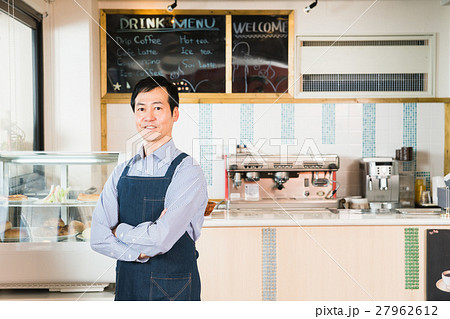カフェ・喫茶店・飲食店で働くミドル世代のアジア人男性(開業・起業・独立・脱サラ)