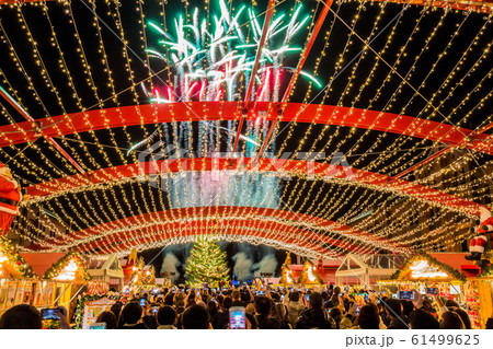 横浜赤レンガ倉庫のクリスマスマーケットの打ち上げ花火