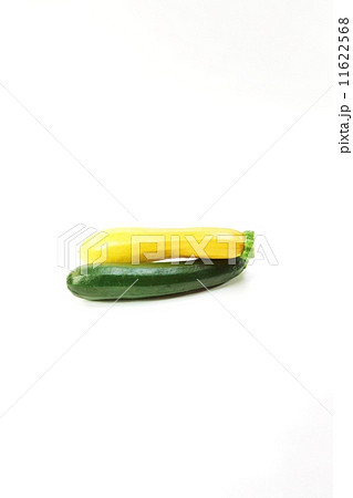 スパゲティー野菜・ズッキーニ緑果種と黄果種各1本ずつ・縦位置