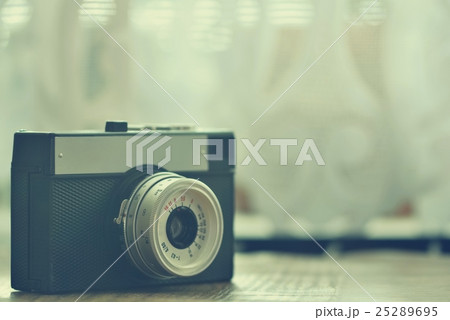Russian old analog camera. Old retro photo.