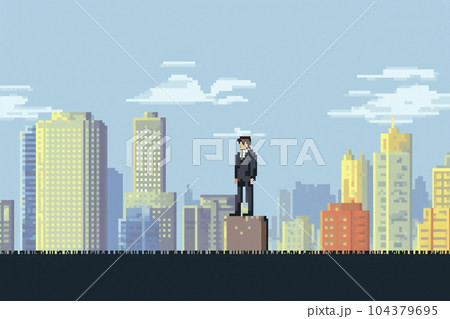 レトロなゲームキャラクターのビジネスマン「AI生成画像」