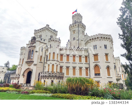 Hluboka Castle facade with neogothic architecture in Czech Republic