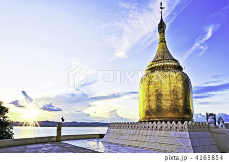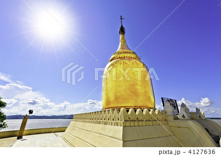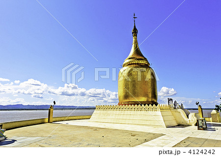 金色に輝くブパヤ・パゴダ(Bupaya Pagoda)。バガン、ミャンマー。2018/2/19