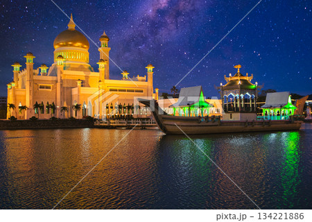 ブルネイのオールドモスクの美しい夜景風景