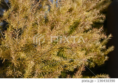 黄金色に輝くメラレウカ(フトモモ科)レボリューションゴールド