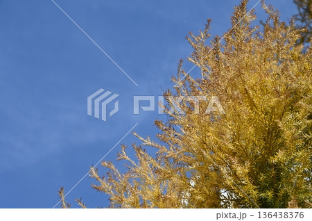 サワラ サンゴールド(ヒノキ科)と見上げる空