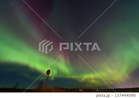 オーロラに映される道路標識