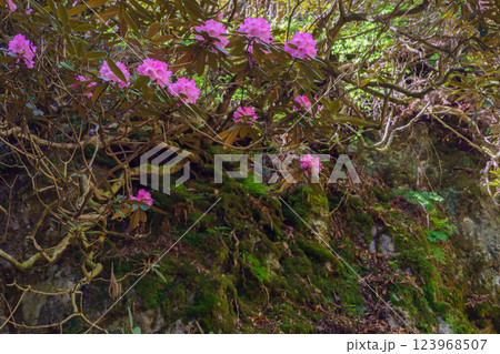 滋賀県蒲生郡日野町鎌掛谷のホンシャクナゲ群落を撮影