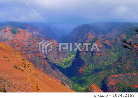ハワイのカウアイ島のワイメアのプゥ・オ・キラ展望台から撮影。