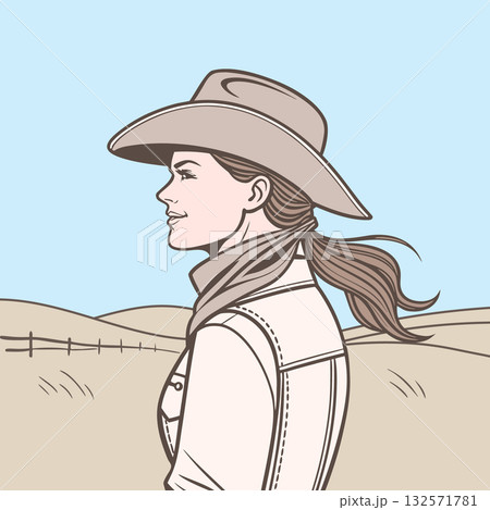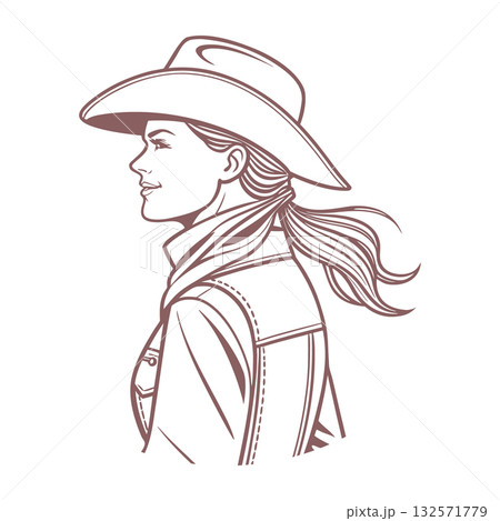 Stylish Cowgirl Profile with Cowboy Hat and Jacket