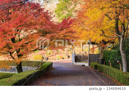 伊豆市 修善寺虹の郷修善寺虹の郷菖蒲門と紅葉